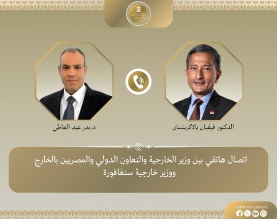 جاء ذلك خلال المكالمة الهاتفية التي أجراها الدكتور بدر عبد العاطي مع الدكتور فيفيان بالاكريشنان، وزير خارجية سنغافورة، يوم الأربعاء 18 مارس. حيث بحث الجانبان سُبل تعزيز العلاقات الثنائية والتطورات الإقليمية الحالية.
