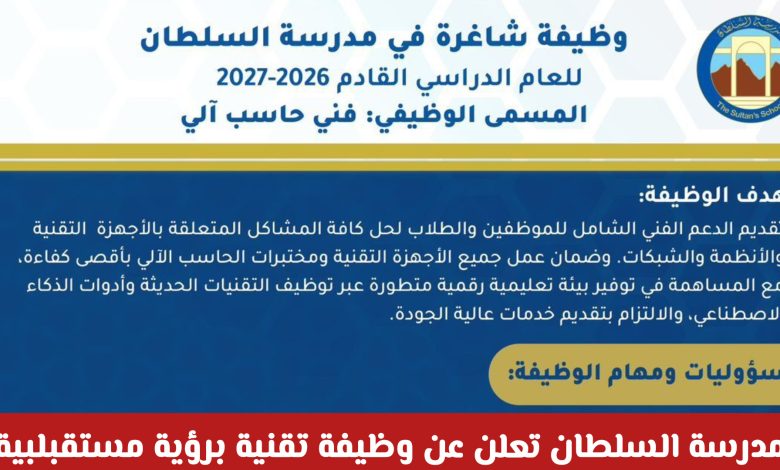 فرصة لا تعوض للعمانيين: مدرسة السلطان تكشف عن وظيفة تقنية برؤية مستقبلية مع تفاصيل التقديم