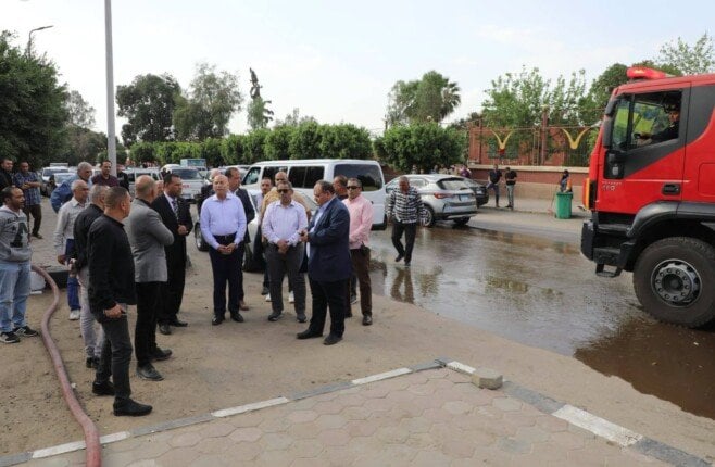 محافظ القاهرة ومدير الأمن يتفقدان موقع حريق في مخزن خردة بجوار مستشفى صدر العباسية مع تغطية بالصور
