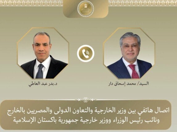 تلقى الدكتور بدر عبد العاطي، وزير الخارجية والتعاون الدولي والمصريين بالخارج، اتصالًا هاتفيًا من محمد إسحاق دار، نائب رئيس الوزراء ووزير خارجية جمهورية باكستان الإسلامية، يوم الأحد الموافق 19 أبريل. جاء هذا الاتصال في إطار التنسيق والتشاور بين البلدين لمتابعة آخر مستجدات الوضع الإقليمي وتعزيز الجهود المشتركة.